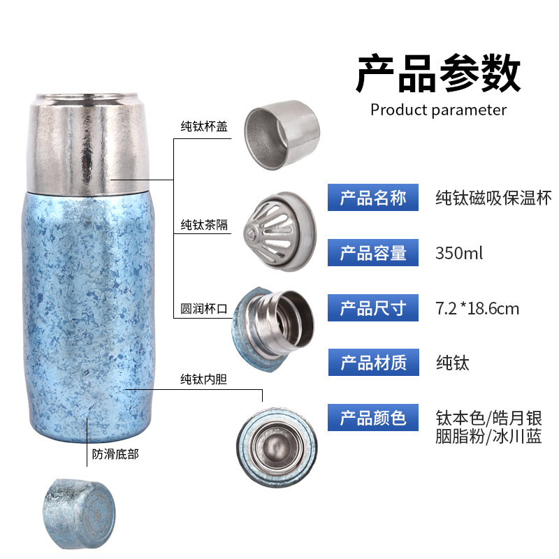 磁吸纯钛保温杯350ml 皓月银
